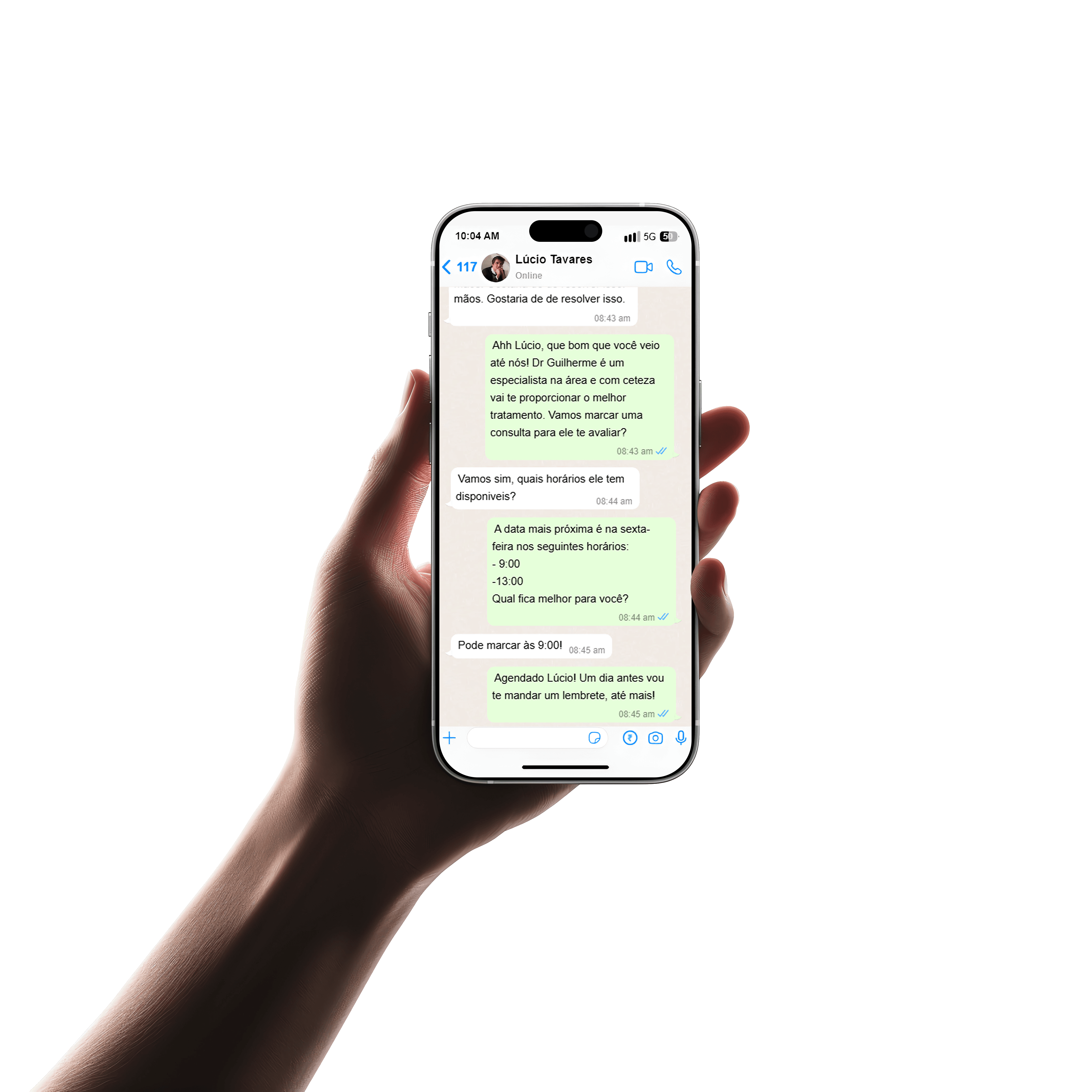 Sugere horários, confirma, envia lembretes e cancela.
